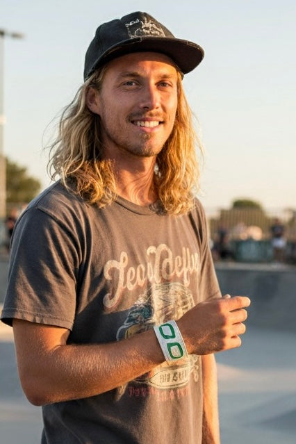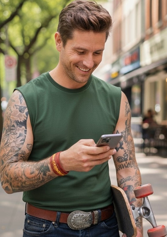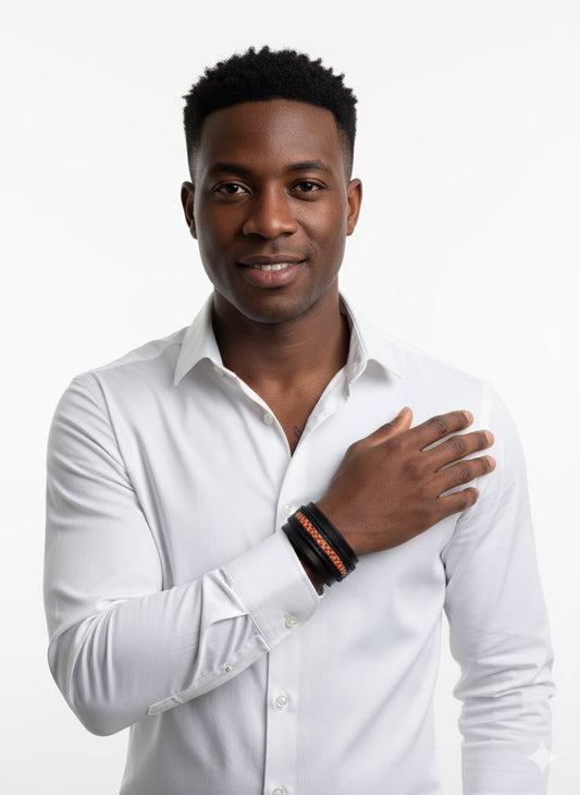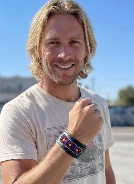 Orange Full Grain Leather bracelet with micro mosaic inlay