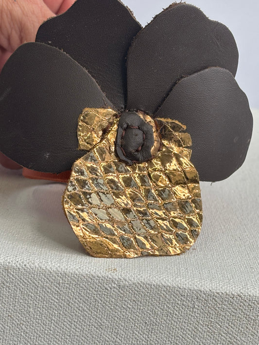 Leather and Micro Mosaic Red/Orange squares Inlay Cuff Style Bracelet