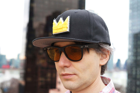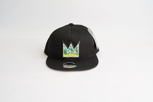 Black Baseball Six Panel Snap Back with Basquiat Yellow Glass Crown