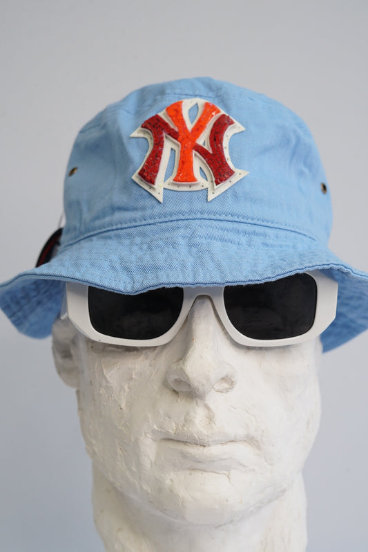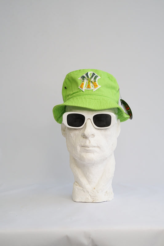 Lime Green Med-Small Bucket hat with Glass Micro Mosaic Yankees insignia