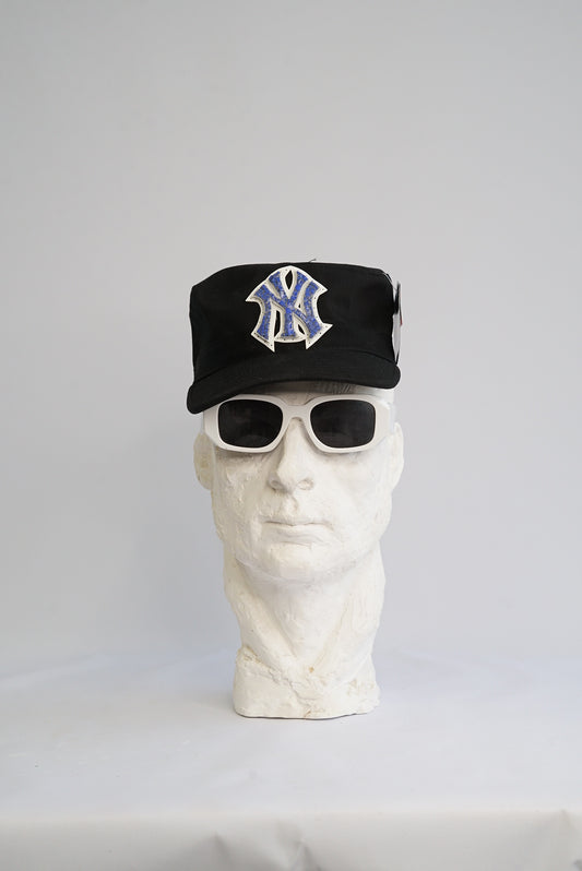 Black Cadet Cap with Blue Glass Micro Mosaic Yankees Logo