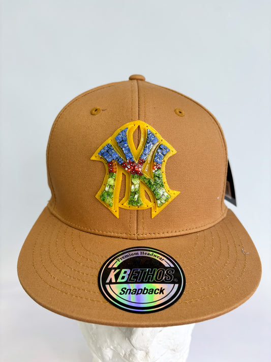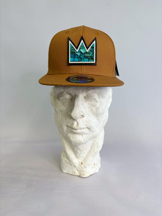 Brown Baseball Hat with Turquoise mosaic Basquiat Crown