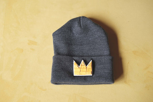 Gray six panel baseball hat with Italian glass mosaic of Basquiat Crown