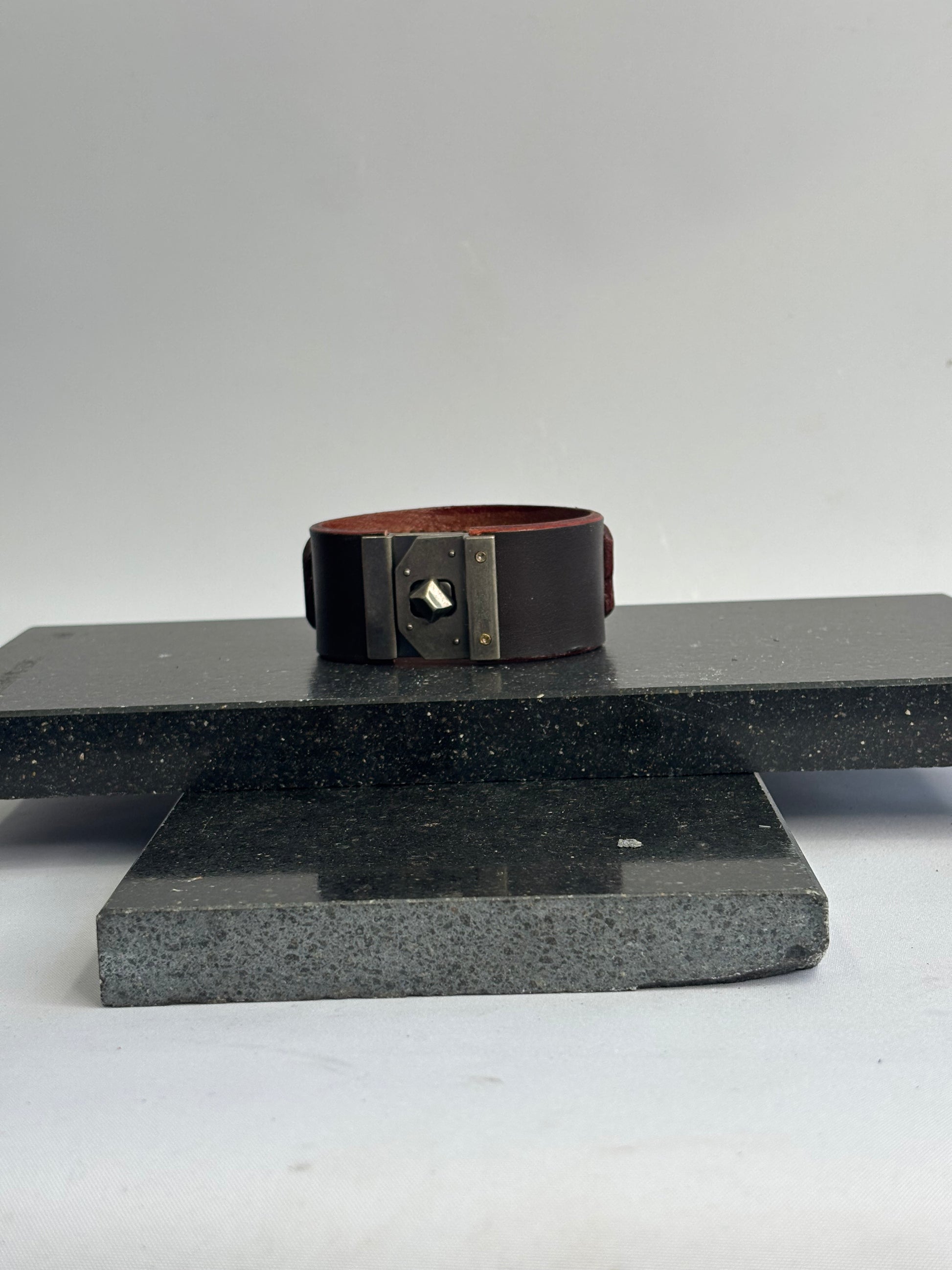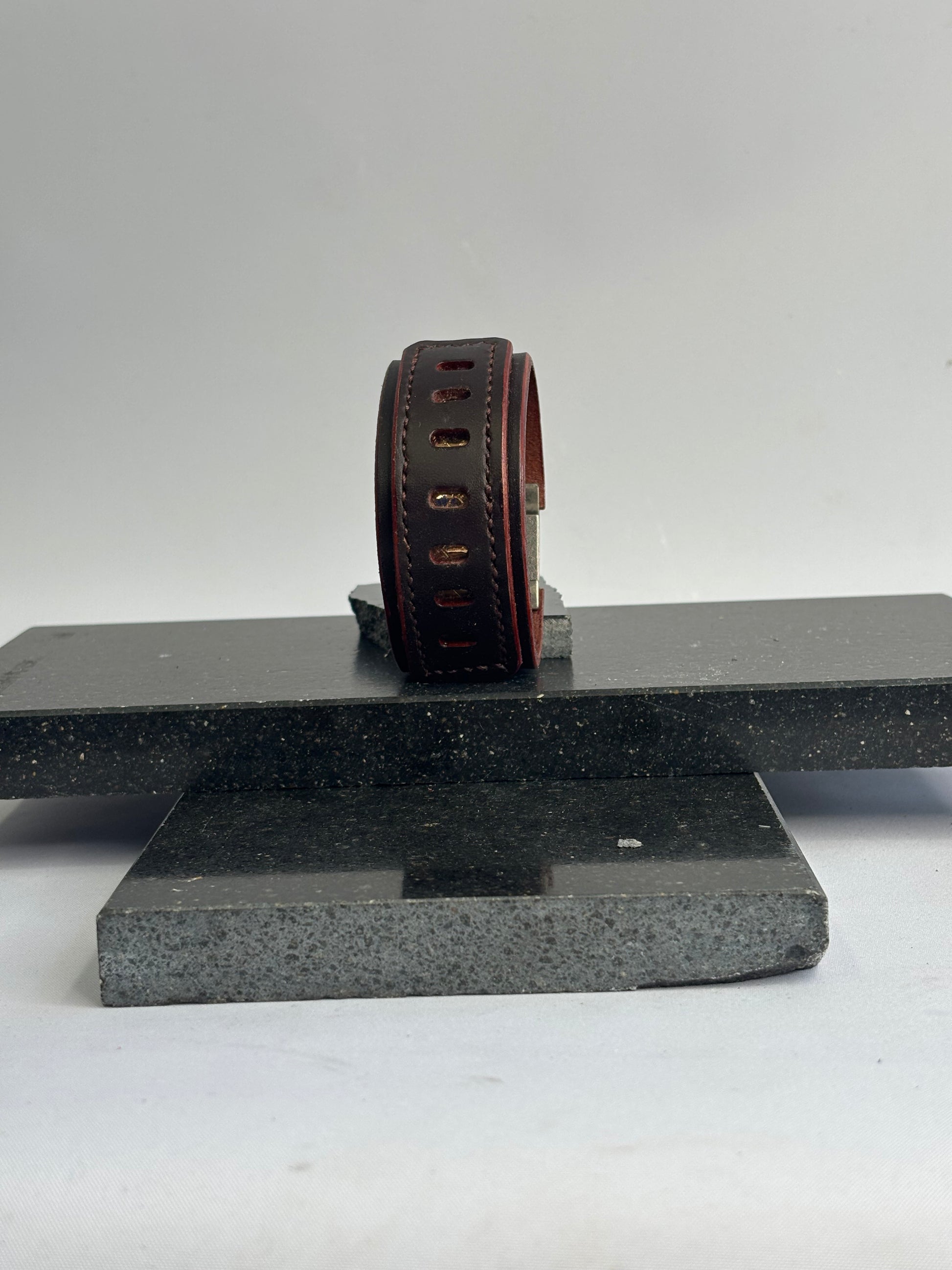 This brown and gold leather bracelet combines elegance with a touch of rock and roll flair. The gold leather shines through delicate windows, adding a unique sparkle, while the beautiful metal clasp ensures a secure fit for medium wrists (7-7.5 inches). Stylish yet affordable, it makes a perfect gift that stands out without stretching your budget.