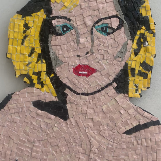 Roman style mosaic of legend Debby Harry made with italian smalti glass part of a 3 series of NYC titans such as Basquiat, Biggie Smalls and Debbie. Good for a big wall for urban New York decor