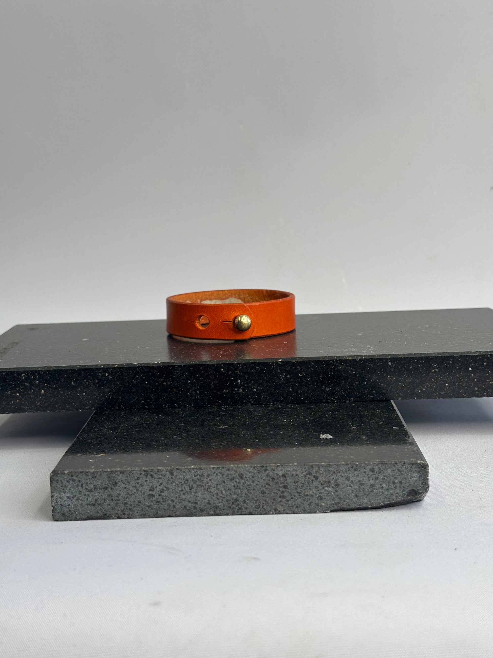 Orange Full Grain Leather bracelet with micro mosaic inlay